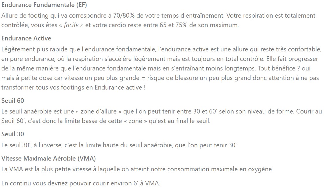 Plans entrainements spécifiques